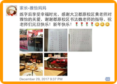 練字后享受幸福時光,感謝大衛郡原校區黃老師對雅怡的關愛,謝謝郡原校區書法魏老師的指導,謝謝你們對少兒美術事業的無私奉獻,為你們點贊,祝老師們元旦節快樂!新年快樂!